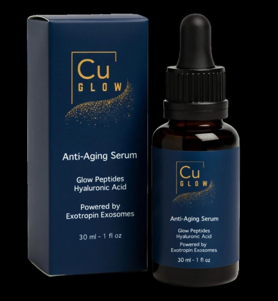 Turn back the clock on tired, dull skin with Cu GLOW Anti-Aging Serum—a scientifically advanced formula designed to deliver rejuvenation, hydration, and radiance. This next-generation serum blends Glow Peptides, Tri-Phase Hyaluronic Acid, and Exotropin Exosomes to visibly firm, smooth, and renew skin texture. Engineered for daily use, it helps restore elasticity and a luminous glow while defending against visible signs of aging at the cellular level.